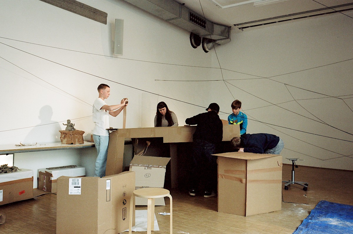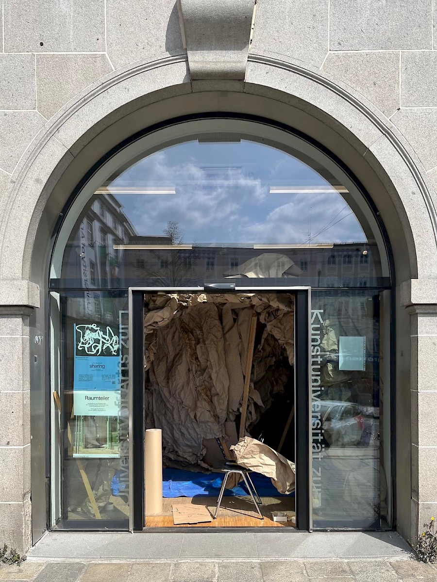 Zum Ausstellungs- und Tagungsformat Lets talk about...sharing befassten sich Studierende in einer Intensivwoche mit der Idee des Raumteilers. Eine Auseinandersetzung mit Skulptur bedeutet immer auch eine Auseinandersetzung mit Raum. Im Zusammenspiel von Skulptur und Raum eröffnen sich grundlegende Fragen des dreidimensionalen Gestaltens: Wie verändert eine Skulptur den leeren Raum? Welchen Dialog gehen Skulptur und Raum ein? Wieviel Raum bleibt in der Skulptur übrig? Wo werden die jeweiligen Grenzen fransig? Neben den skulpturalen Aspekten werden wir auch soziale und politische Dimensionen untersuchen.